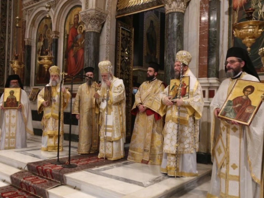 Τον πανηγυρικό της ημέρας, κατά την οποία η Εκκλησία τιμά την αναστήλωση των Ιερών Εικόνων, εκφώνησε ο συνοδικός μητροπολίτης Ιλίου, Αχαρνών και Πετρουπόλεως Αθηναγόρας, ο οποίος αναφέρθηκε στη σημερινή Περικοπή της Καινής Διαθήκης -στη θεία κλήση του Κυρίου προς τον Ναθαναήλ- για να τονίσει ότι «η Εκκλησιαστική Παράδοση την τοποθέτησε στο τυπικό της Α’ Κυριακής των Νηστειών, για να μας βοηθήσει στο ταξίδι της πίστης-εμπιστοσύνης μας στην ανακάλυψη του θεανδρικού προσώπου του Χριστού».
