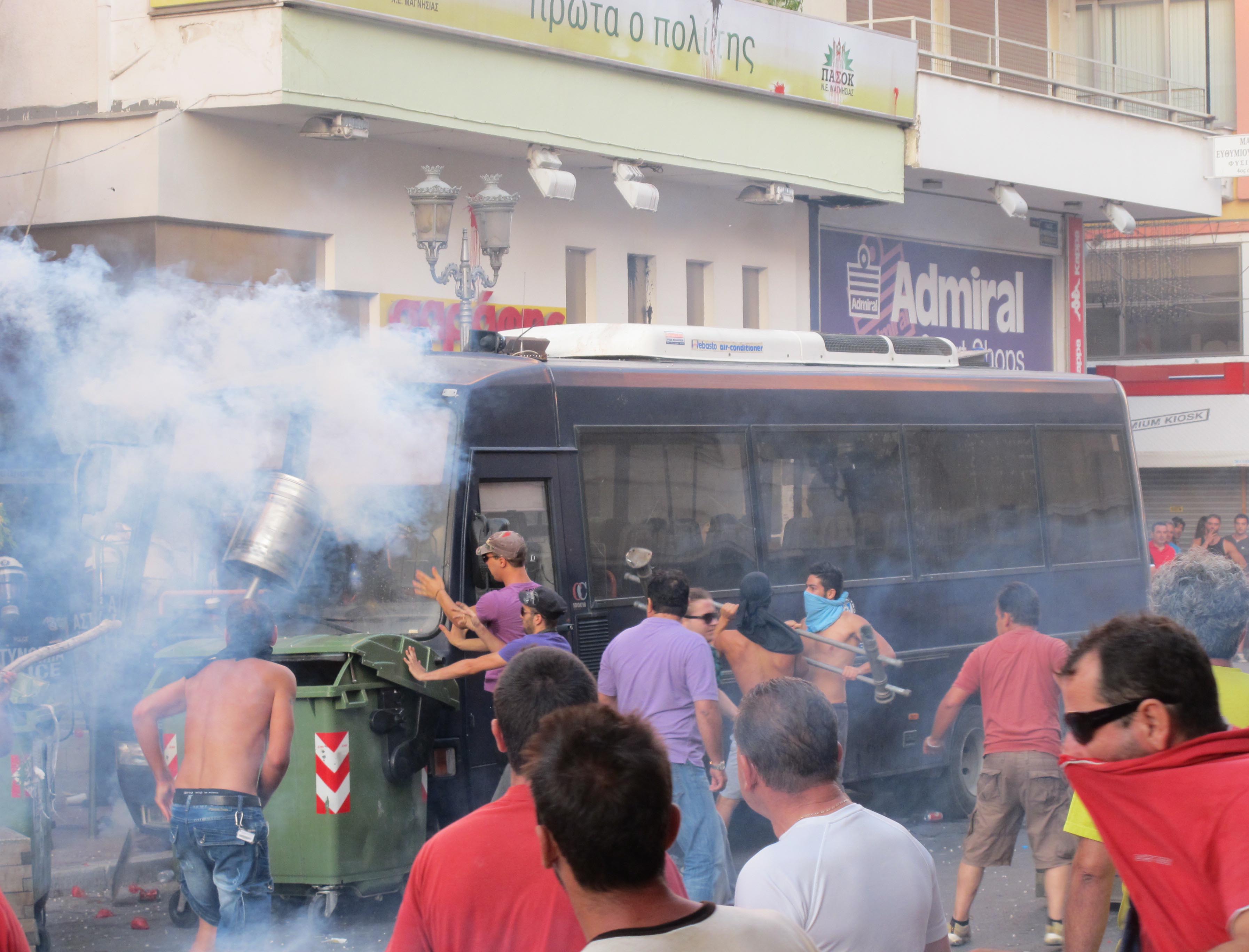 Δακρυγόνα, φωτιές και πετροπόλεμος είναι τα κύρια χαρακτηριστικά της εικόνας που μπορεί να αντικρίσει κάποιος στο κέντρο της πόλης, όπως και ο καπνός από τους δεκάδες καμένους κάδους.