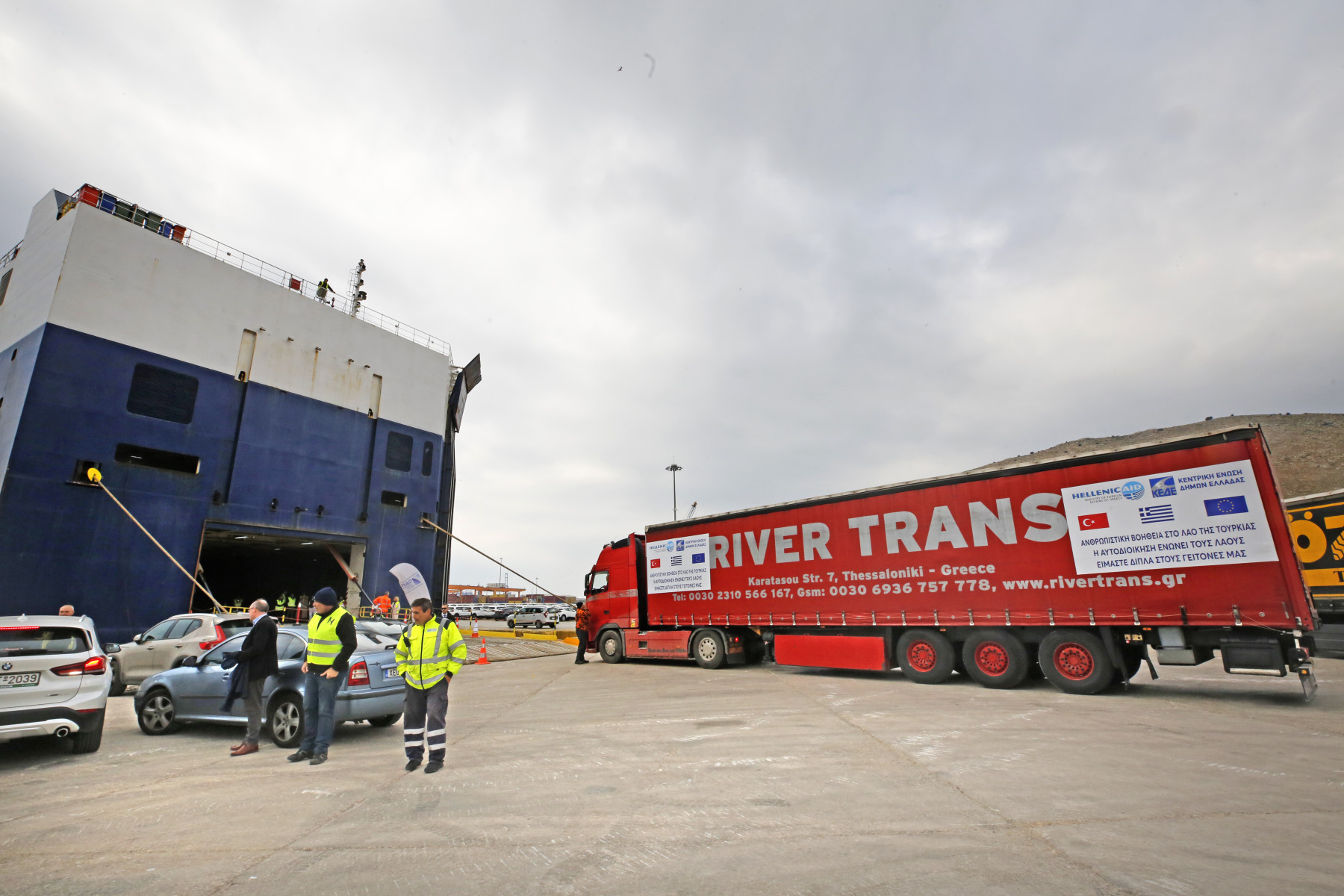 Με το Neptune Okeanis, απέπλευσαν το μεσημέρι με προορισμό το λιμάνι της Αλεξανδρέτας στην Τουρκία, φορτηγά με ανθρωπιστική βοήθεια για τους πληγέντες από τους καταστροφικούς σεισμούς των προηγούμενων ημερών.