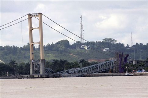 Τριάντα εννιά άνθρωποι τραυματίστηκαν όταν η γέφυρα, στον ποταμό Μαχακάμ τον μεγαλύτερο του Βόρνεο, κατέρρευσε τη στιγμή που αρκετά αυτοκίνητα και μοτοσικλέτες την διέσχιζαν.