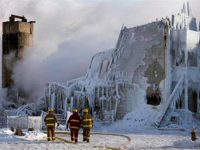 Με τις ποσότητες νερού που ερρίφθησαν για την κατάσβεση της φωτιάς και με τη θερμοκρασία να αγγίζει τους -30 βαθμούς στην περιοχή, ένα στρώμα πάγου, πάχους 10 έως 30 εκατοστών, καλύπτει τα ερείπια, εξήγησε ο Ιβόν Σαρόν, διευθυντής της πυροσβεστικής υπηρεσίας.