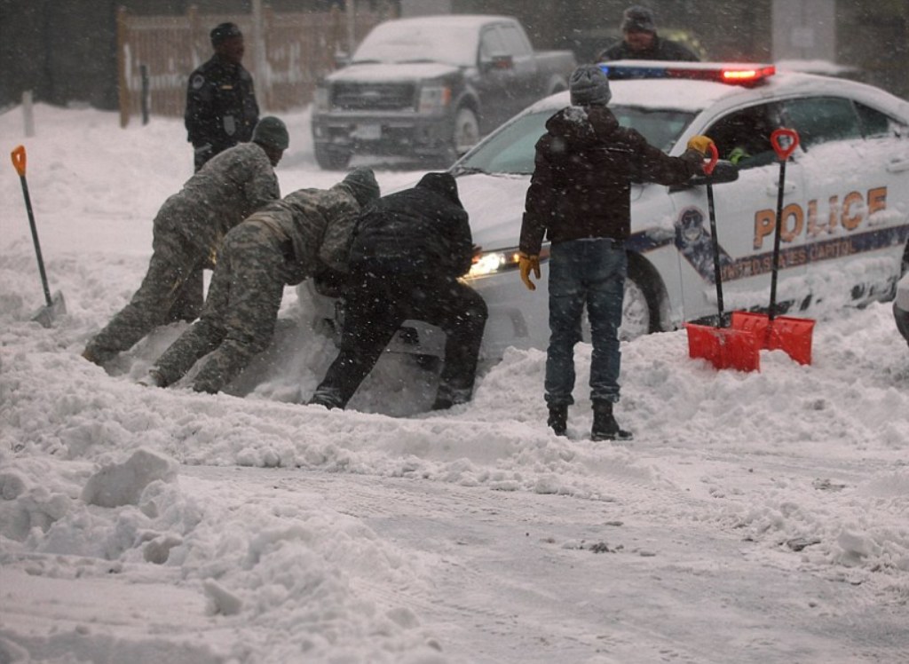 Όπως ανακοίνωσε το Γραφείο της Διοίκησης Προσωπικού των ΗΠΑ χθες το απόγευμα, τα γραφεία της ομοσπονδιακής κυβέρνησης θα παραμείνουν κλειστά σήμερα Δευτέρα. Η Βουλή των Αντιπροσώπων ακύρωσε τις ψηφοφορίες για το υπόλοιπο της εβδομάδας, ενώ η Γερουσία μετέθεσε την πρώτη ψηφοφορία της εβδομάδας από αύριο στη Τετάρτη. Τα σχολεία στην περιφέρεια της πρωτεύουσας και σε μερικά προάστια θα παραμείνουν κλειστά σήμερα. Τα δύο μεγάλα αεροδρόμια της μητροπολιτικής περιοχής της Ουάσιγκτον, το Ρέιγκαν (πτήσεις εντός ΗΠΑ) και το Ουάσιγκτον Ντάλες (διεθνείς πτήσεις), παρέμειναν εντελώς κλειστά χθες, με όλες τις πτήσεις να έχουν ακυρωθεί.