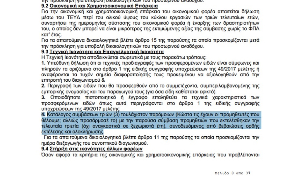 «Κατάλογος συμβάσεων τριών (3) τουλάχιστον παρόμοιων (Κώστα τις έχουν οι προμηθευτές που θέλουμε; αλλιώς προσάρμοσέ το) με την παρούσα σύμβαση προμηθειών που εκτελέσθηκαν την τελευταία τριετία (όχι αναγκαστικά σε ξεχωριστά έτη), συνοδευόμενος από βεβαιώσεις ορθής εκτέλεσης και ολοκλήρωσης».
