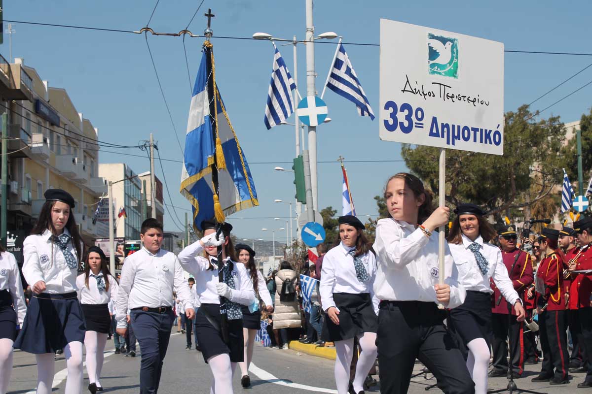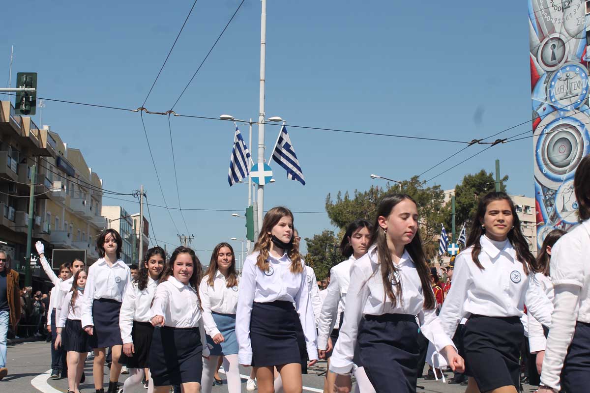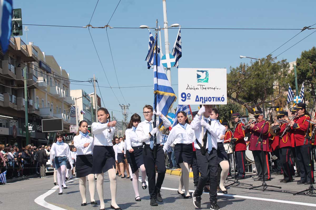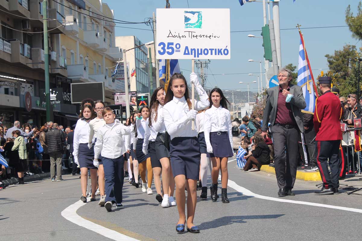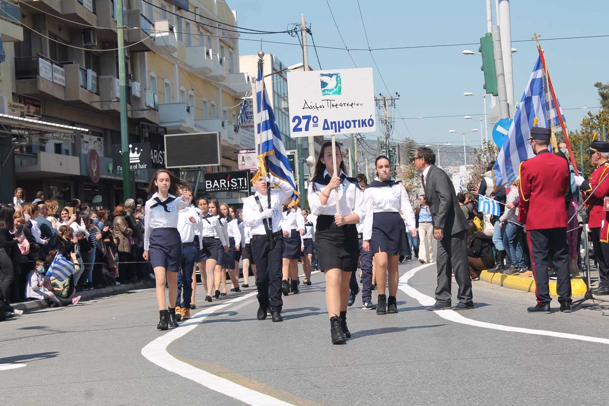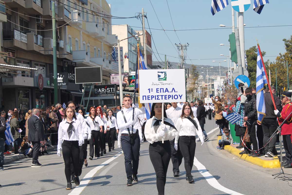 Χιλιάδες κόσμου θαύμασαν από κοντά τη μαθητική παρέλαση της 25ης Μαρτίου 2022 στο Περιστέρι.