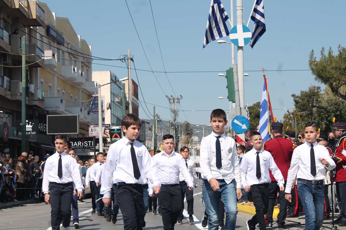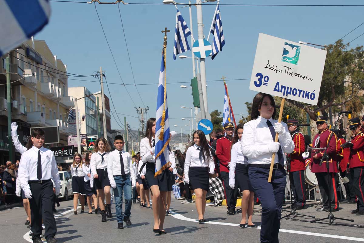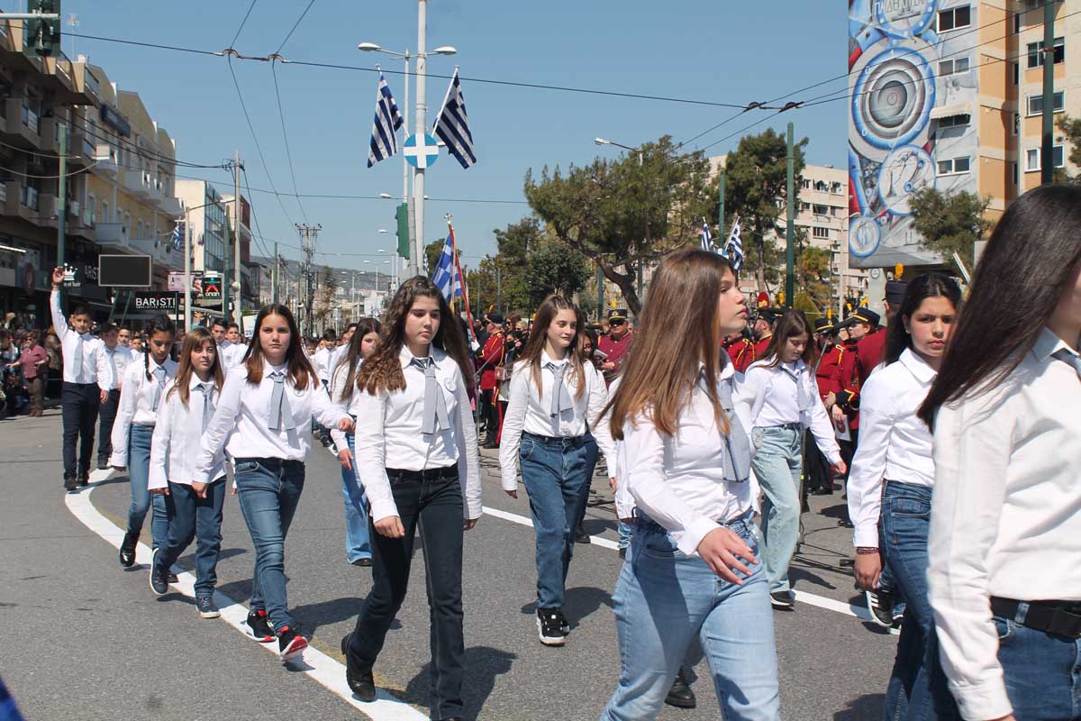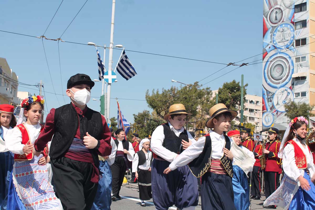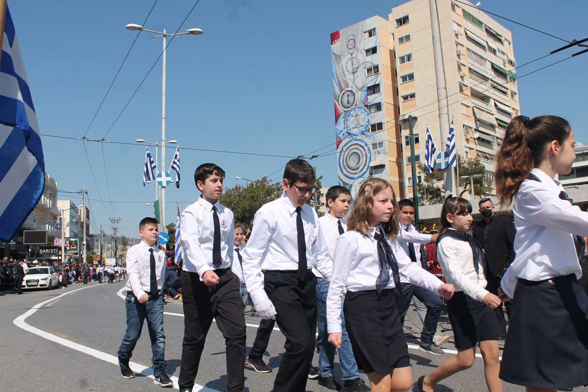 Χιλιάδες κόσμου θαύμασαν από κοντά τη μαθητική παρέλαση της 25ης Μαρτίου 2022 στο Περιστέρι.