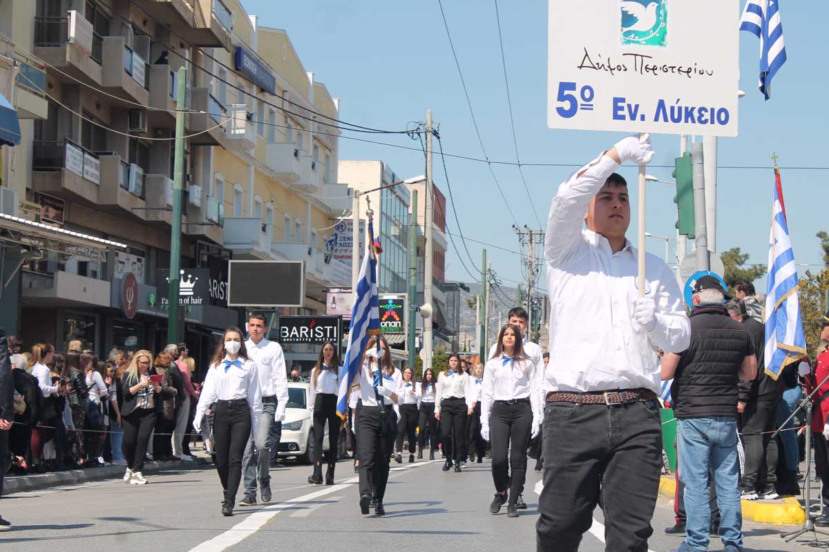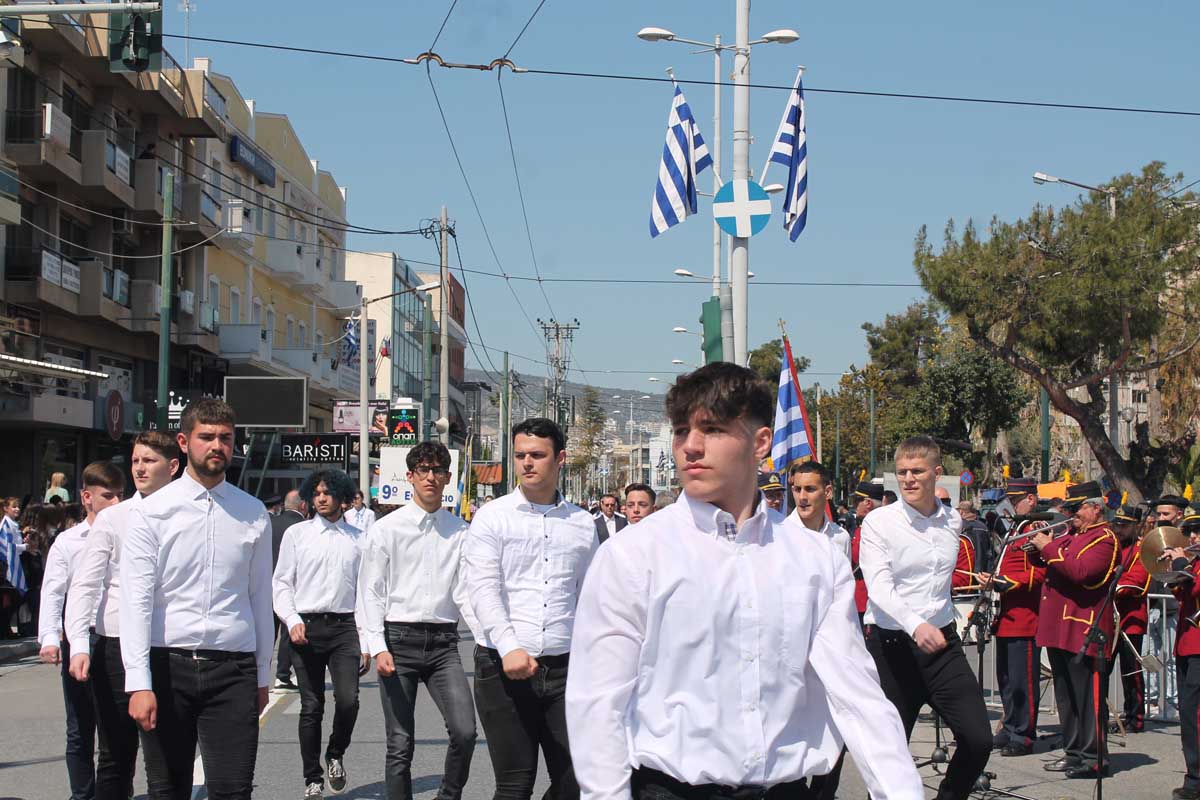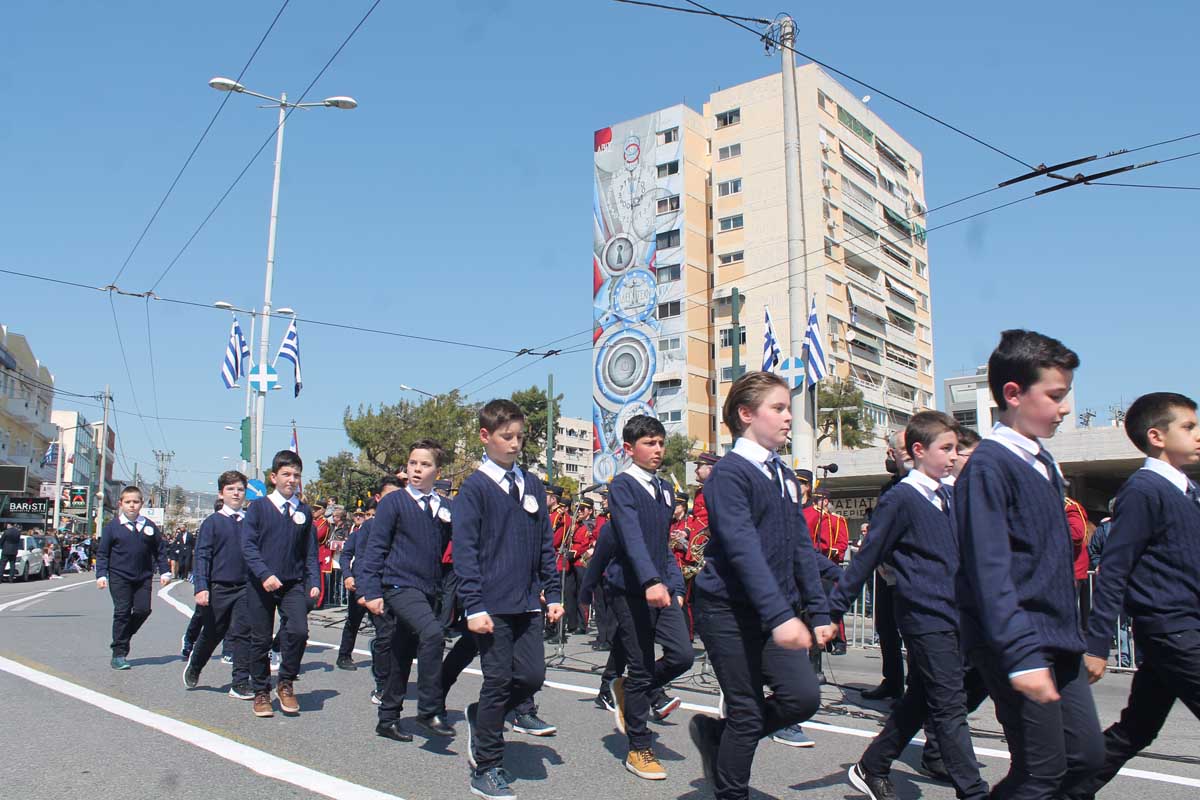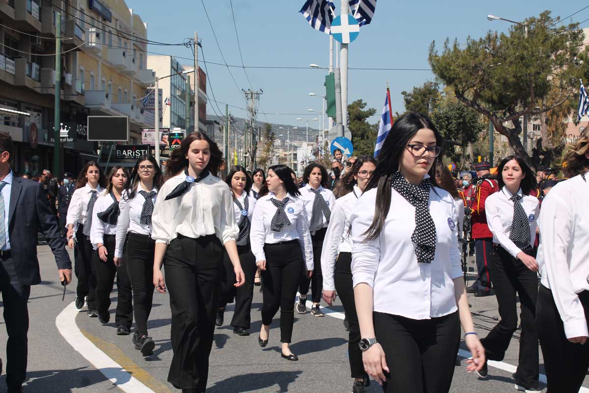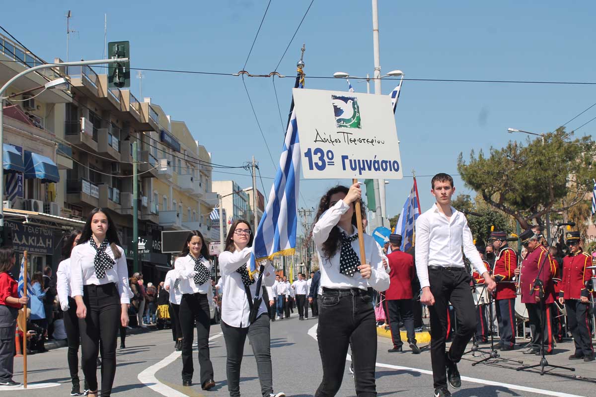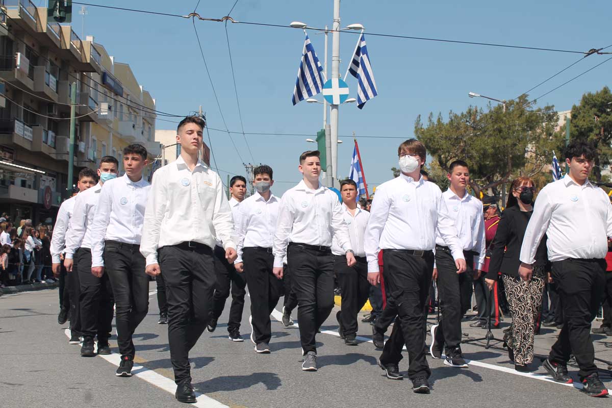 Χιλιάδες κόσμου θαύμασαν από κοντά τη μαθητική παρέλαση της 25ης Μαρτίου 2022 στο Περιστέρι.