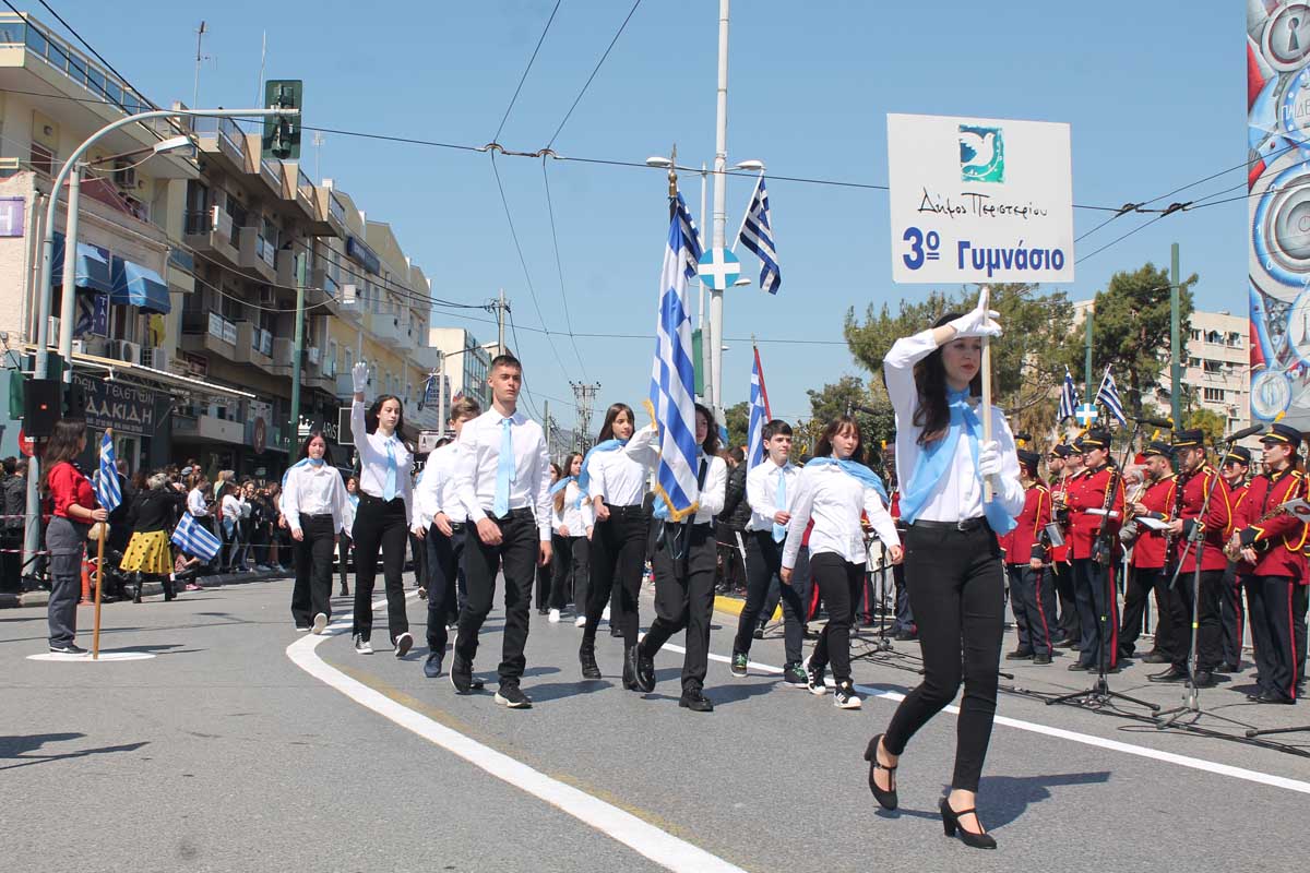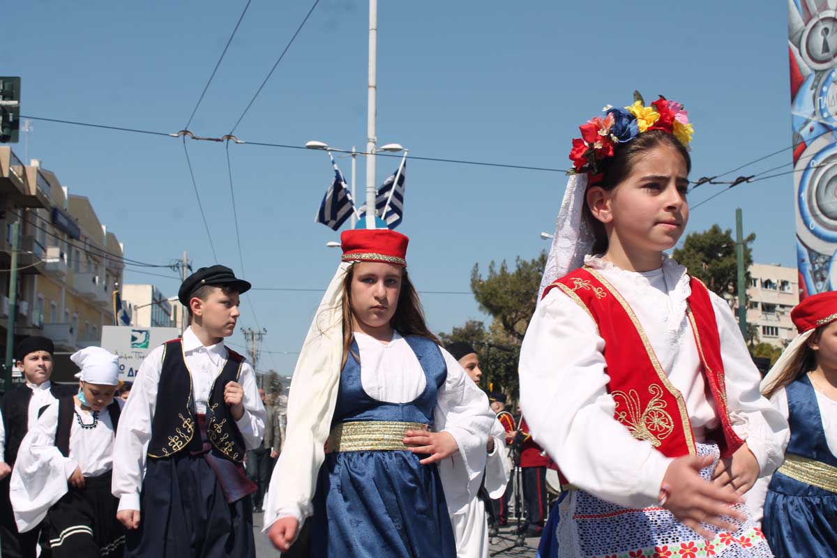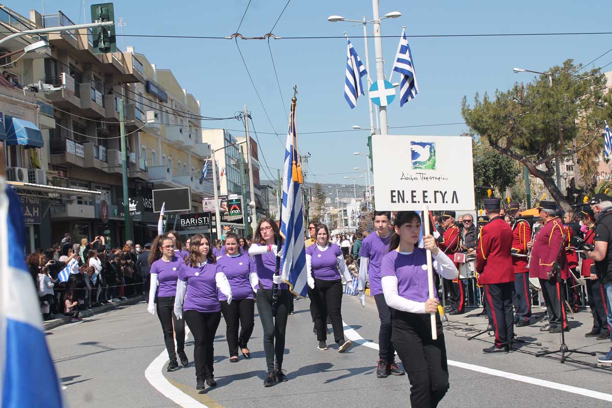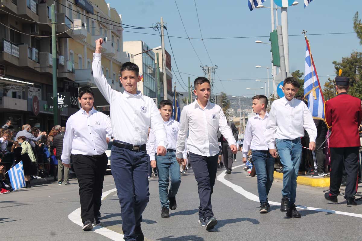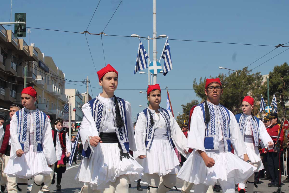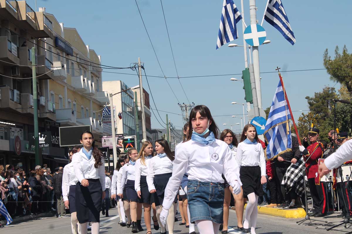 Χιλιάδες κόσμου θαύμασαν από κοντά τη μαθητική παρέλαση της 25ης Μαρτίου 2022 στο Περιστέρι.