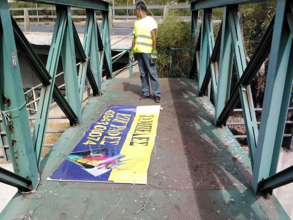 Ειδικότερα, κατά τη διάρκεια αποξήλωσης παράνομων διαφημιστικών πινακίδων από συνεργεία της Διεύθυνσης Διαχείρισης Μητροπολιτικών Υποδομών Περιφέρειας Αττικής, διαπιστώθηκε η τοποθέτηση διαφημιστικών λαβάρων, επί της γέφυρας Ροσινιόλ στον Κηφισό, στη συμβολή με την οδό Κωνσταντινουπόλεως, από αυτοκινούμενο συνεργείο ιδιωτικής εταιρείας.