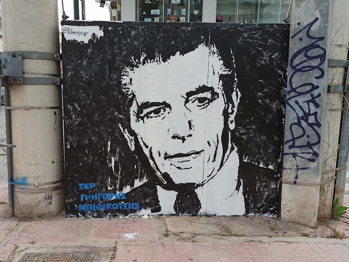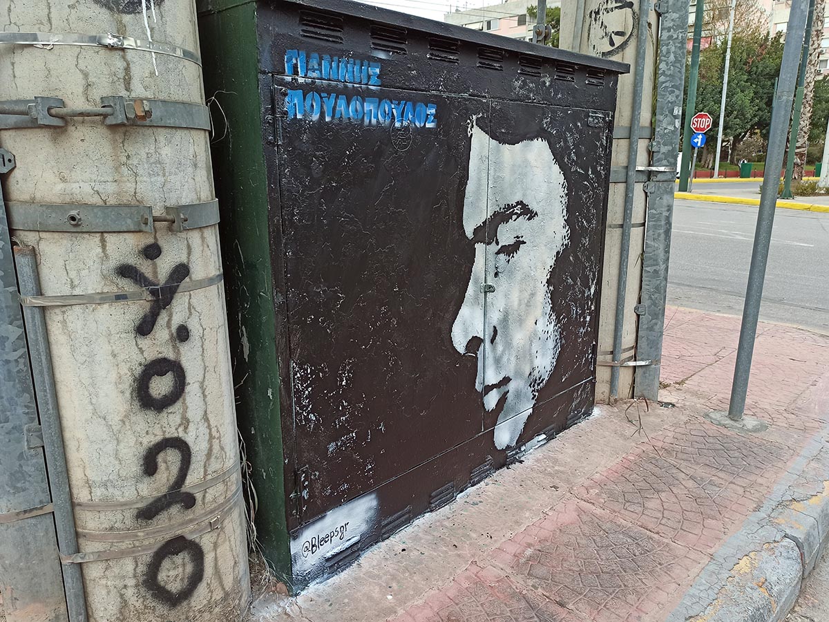 Οι μορφές των Γρηγόρη Μπηθικώτση και Γιάννη Πουλόπουλου απεικονίζονται εδώ και μερικές βδομάδες στη βάση ενός πυλώνα ρεύματος έπειτα από την εικαστική παρέμβαση του Bleeps.