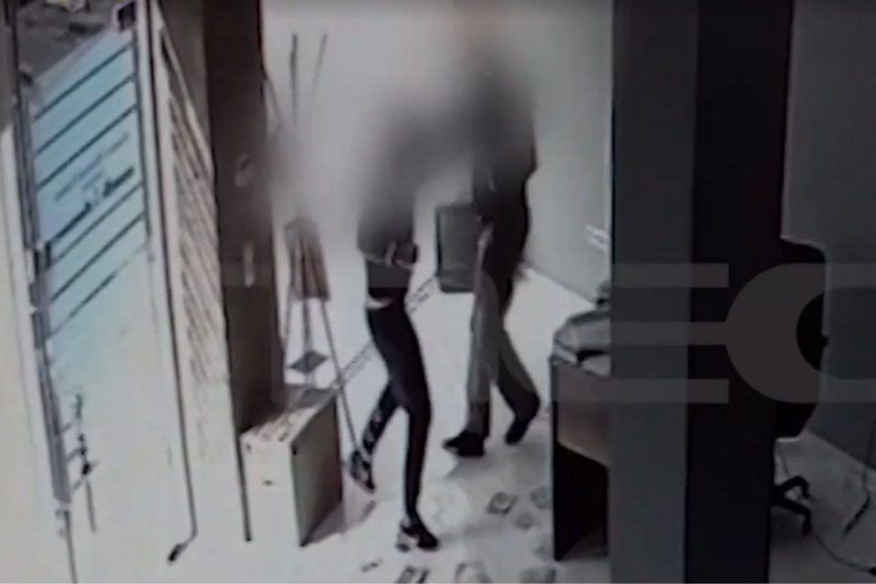 Σε άλλο βίντεο φαίνεται ένας από τους συλληφθέντες να μπαίνει σε κατάστημα και να αφήνει κάποια φυλλάδια πάνω στο γραφείο μιας εργαζομένης.