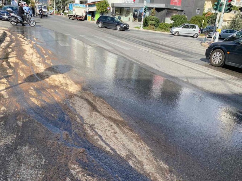 Μάλιστα, στο σημείο βρίσκεται συνεργείο του Δήμου Περιστερίου, ώστε να ρίξουν πριονίδι στους δρόμους, για να απορροφήσει το πετρέλαιο.