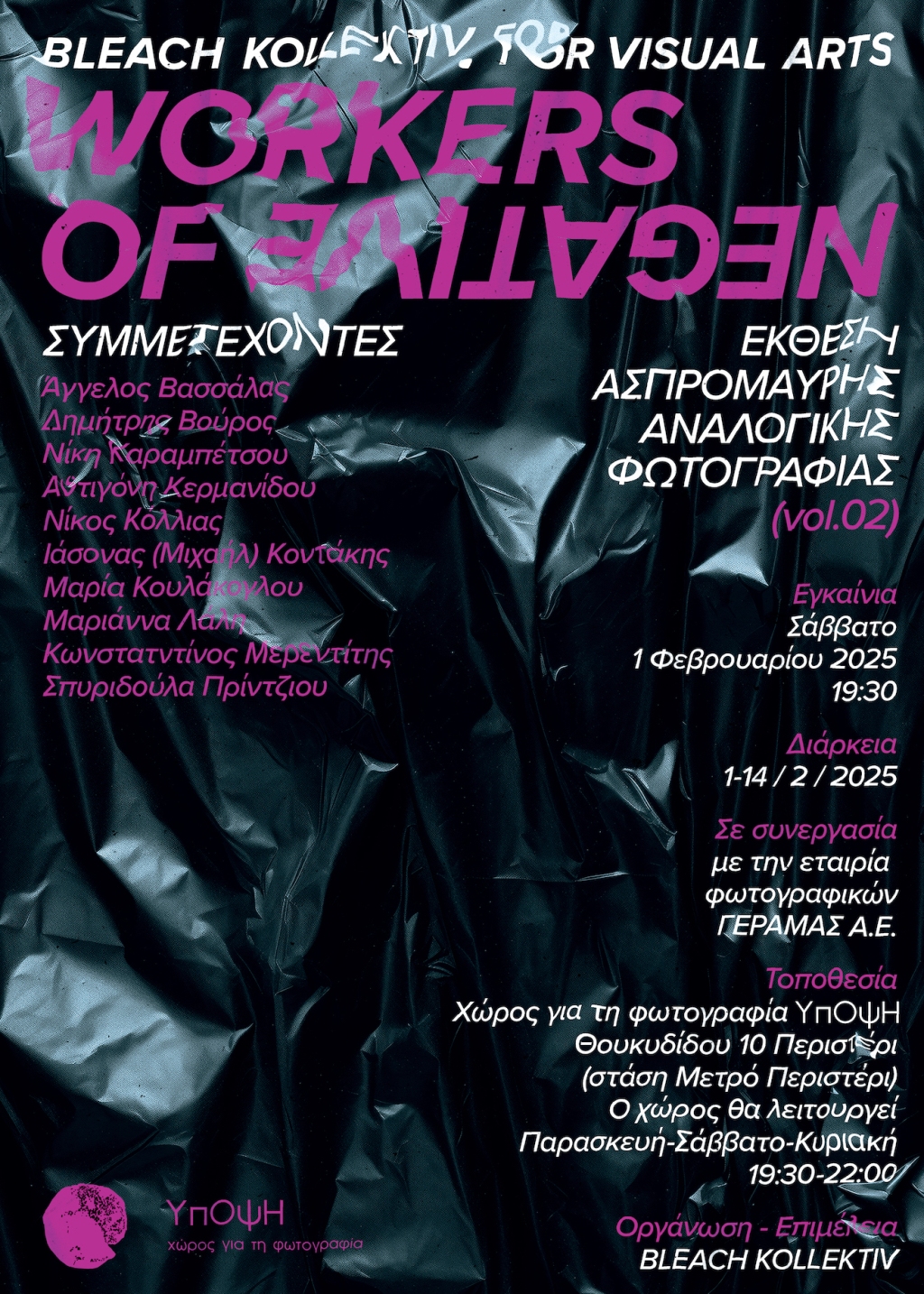 Η Bleach Kollektiv παρουσιάζει την ομαδική έκθεση ασπρόμαυρης αναλογικής φωτογραφίας Workers of Negative (Vol.2) στο χώρο για τη φωτογραφία ΥπΟψΗ.