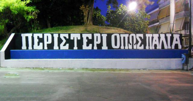 Η αλήθεια είναι ότι υπάρχουν και οι βαμμένοι τοίχοι που προκαλούν εντυπωσιασμό, δίνουν χρώμα στη ζωή μας και προσφέρουν μοναδικές εικόνες. Σε διάφορα σημεία στο Περιστέρι οι δημιουργοί των μοναδικών graffiti και καλλιτεχνιών έχουν δώσει τον καλύτερό τους εαυτό και σίγουρα θα θέλαμε να δημιουργηθούν ακόμα περισσότερες όμορφες εικόνες στην πόλη μας αντιθέτως με τα κακόγουστα συνηθισμένα ονόματα ομάδων.