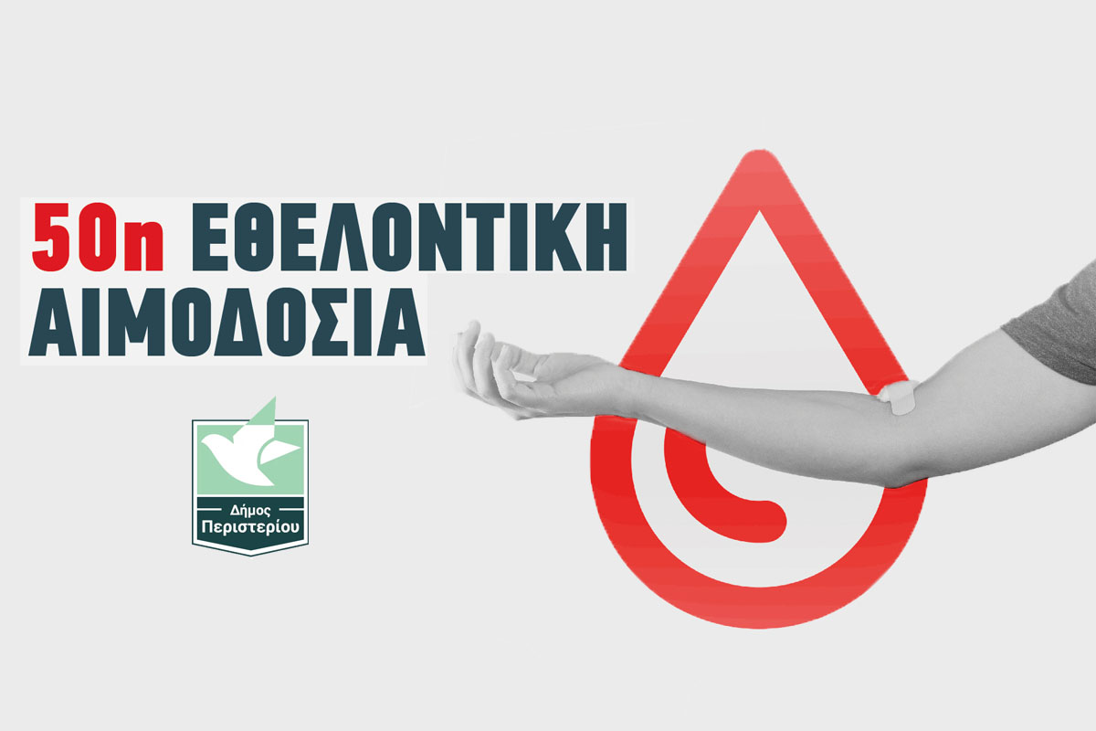 O Οργανισμός Προσχολικής Αγωγής Αθλητισμού και Πρόνοιας του Δήμου Περιστερίου (ΟΠΑΑΠ) διοργανώνει την 50η Εθελοντική Αιμοδοσία, με τη υποστήριξη της κινητής μονάδας αιμοληψίας του Νοσοκομείου «Λαϊκό».