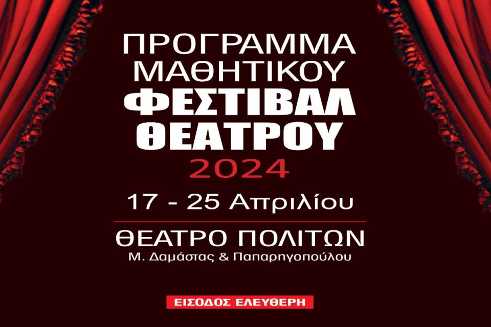 Οκτώ παραστάσεις θα φιλοξενηθούν στο Μαθητικό Φεστιβάλ Θεάτρου Δευτεροβάθμιας Εκπαίδευσης 2024 που θα γίνει στο Περιστέρι.