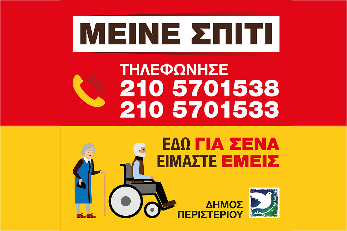 Ο Δήμος Περιστερίου ανακοινώνει τις τηλεφωνικές γραμμές εξυπηρέτησης για τους ηλικιωμένους, τα άτομα με κινητικές δυσκολίες και όλες τις ευπαθείς κοινωνικές ομάδες, κατά την περίοδο των περιοριστικών μέτρων για την αποτροπή της εξάπλωσης του κορονοϊού.