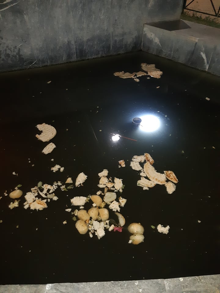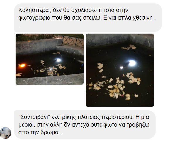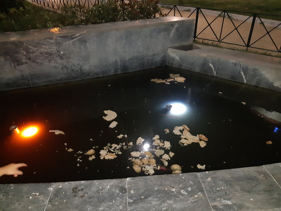 Η εικόνα όπως αναφέρει και ο αναγνώστης μιλάει από μόνη της και δείχνει την τραγική κατάσταση που βρισκόταν το σιντριβάνι με σκουπίδια και μαυρίλα στο νερό.