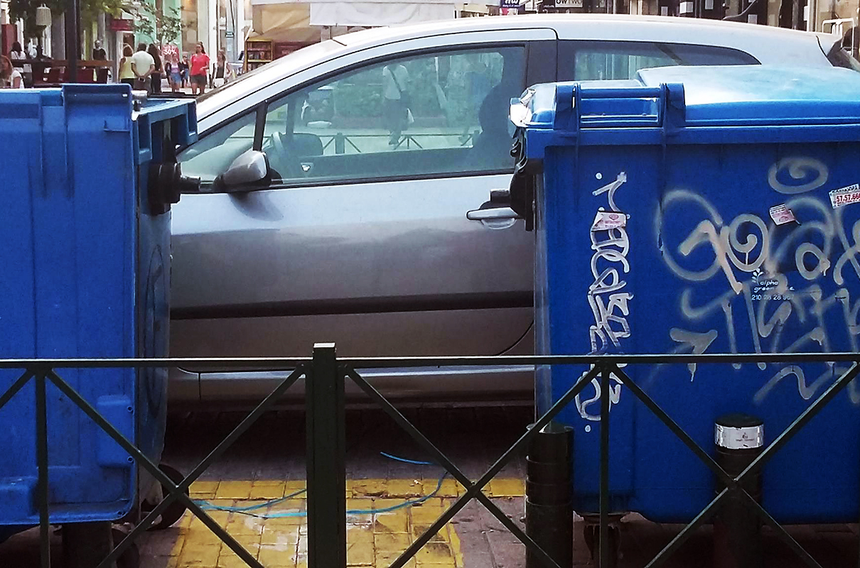 Παρά τις ενέργειες του Δήμου Περιστερίου με διανομή φυλλαδίου για την προστασία των ατόμων με κινητικά προβλήματα στους δρόμους του Περιστερίου το πρόβλημα συνεχίζεται.