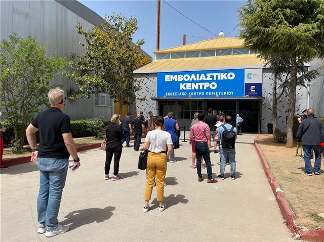 Ουρές παρατηρήθηκαν και σήμερα έξω από το εμβολιαστικό κέντρο Περιστερίου.