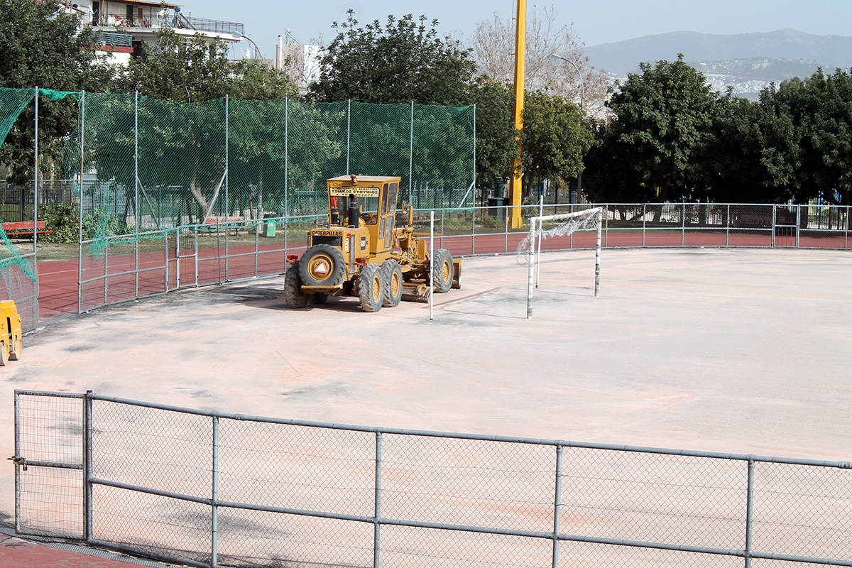 Στην τελική ευθεία είναι η τοποθέτηση του πλαστικού ποδοσφαιρικού τάπητα ενώ τις επόμενες μέρες θα ξεκινήσει και η αναμόρφωση του ταρτάν στον περιβάλλοντα χώρο για τους εκατοντάδες καθημερινούς επισκέπτες που πηγαίνουν για τρέξιμο.