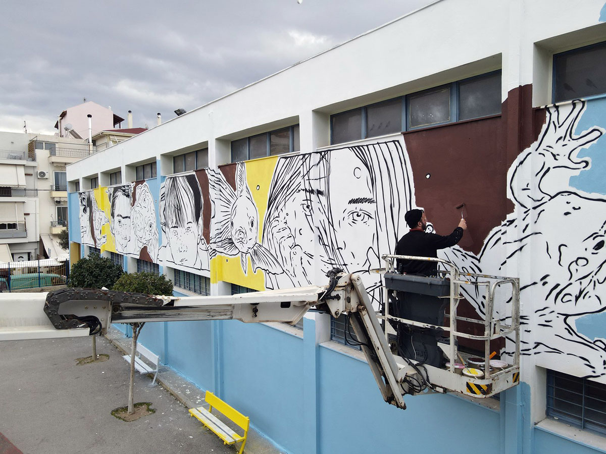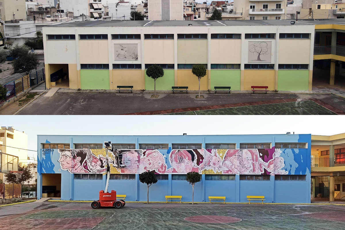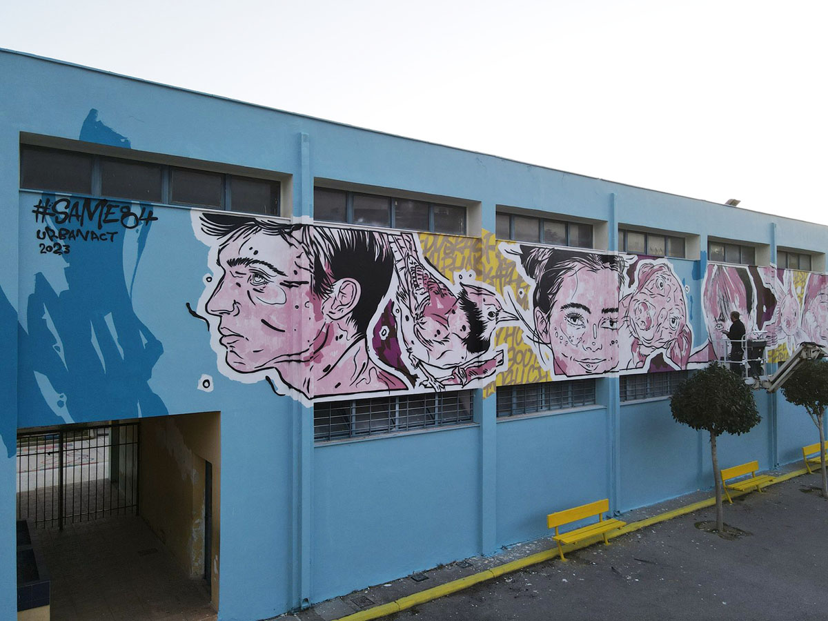 O Same84 υλοποίησε μια μεγάλη εικαστική παρέμβαση στο 11o Δημοτικό Σχολείο Περιστερίου μέσα στον Μάρτιο μετά από πρόσκληση του Συλλόγου Γονέων και Κηδεμόνων του σχολείου.