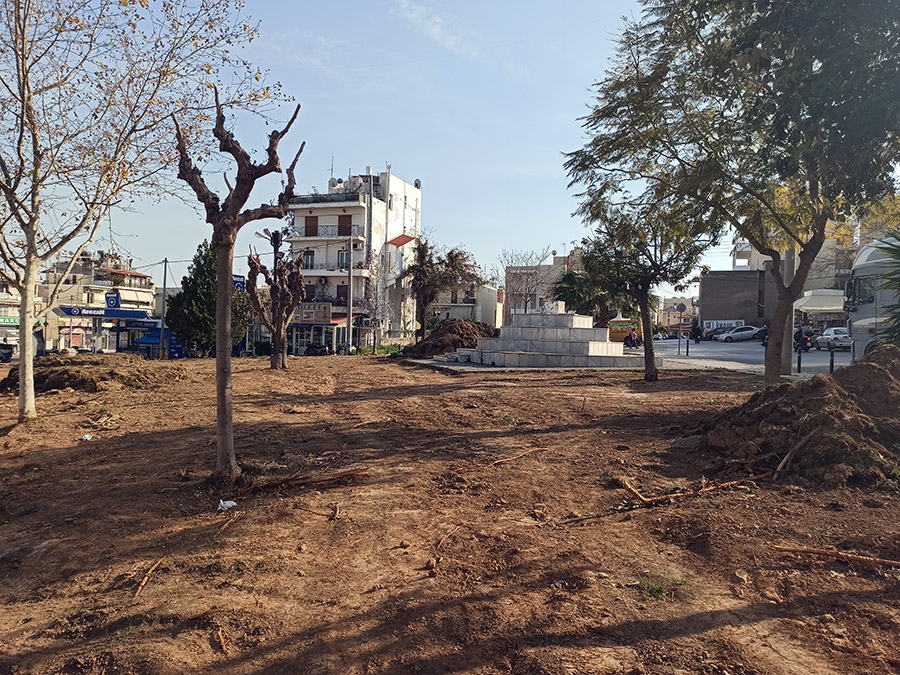 Στην πλατεία θα τοποθετηθούν νέα υψηλά δέντρα, νέος φωτισμός και πλακόστρωση όπως επίσης και περισσότερα καθιστικά σε σχέση με την προηγούμενη εικόνα.