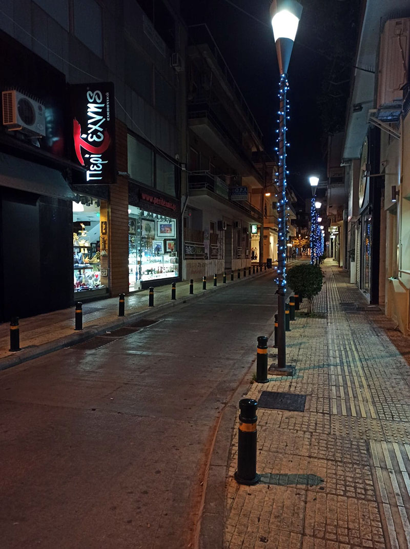 Μέχρι και χθες 25 Ιανουαρίου (1 μήνα μετά τα Χριστούγεννα) σε κάποιους δρόμους της πόλης έχουν παραμείνει τα εορταστικά λαμπάκια και συνάμα το κλίμα των εορτών.