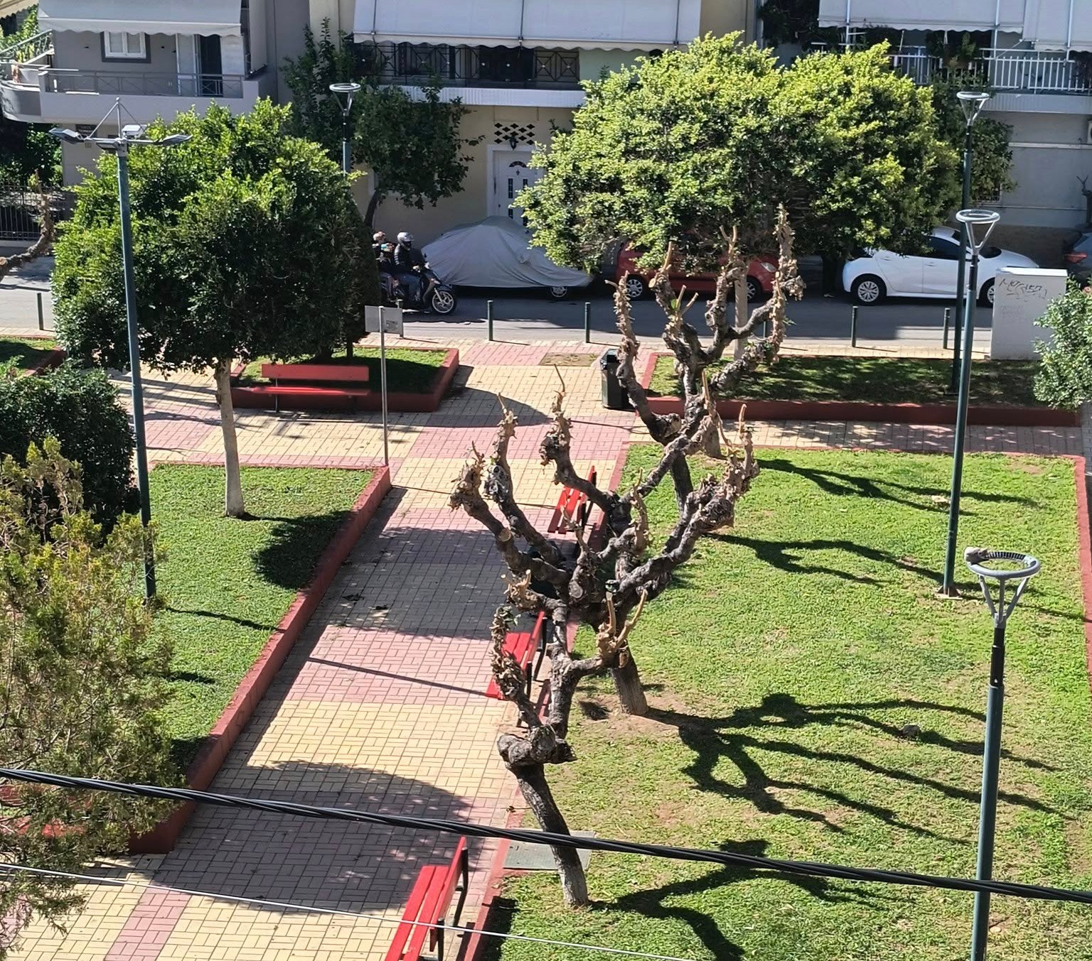 «Πέμπτη 9 Οκτωβρίου 2025, στο πάρκο στην Γεροστάθη, κουρεμένα τα δέντρα μέχρι τον κορμό. Οι κορμοί μόνο έμειναν από τις μουριές. Ούτε ένα φυλλαράκι δεν ήταν ξερό. Ανάσα ζωής και αισθητικής το πράσινο… Μόνο απογοήτευση για τους υπεύθυνους. Τι κρίμα! Τι κρίμα!»