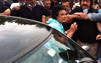 Οι διαδηλωτές αντέδρασαν έντονα μόλις είδαν την βουλευτή και σταμάτησαν το αυτοκίνητό της.