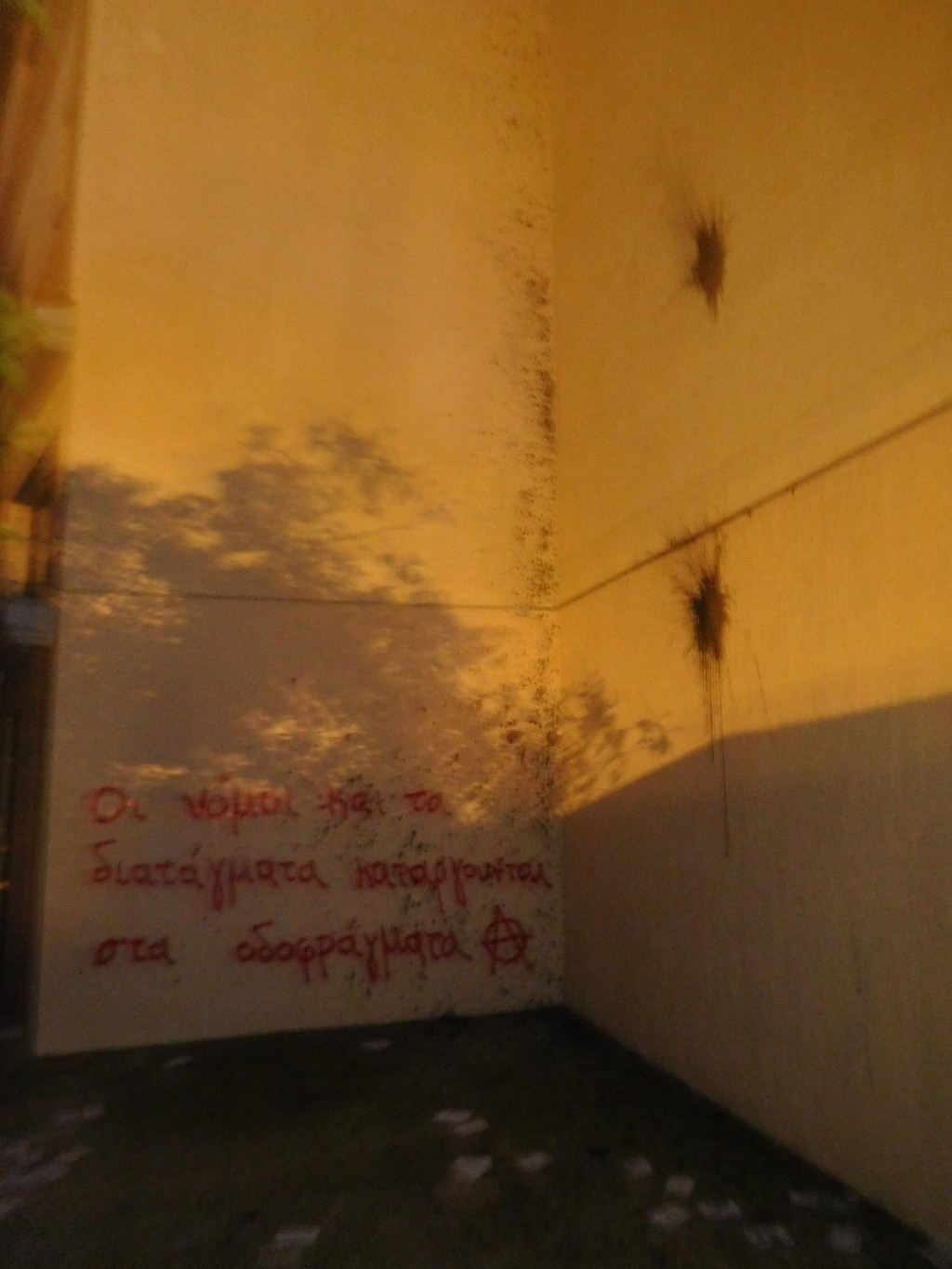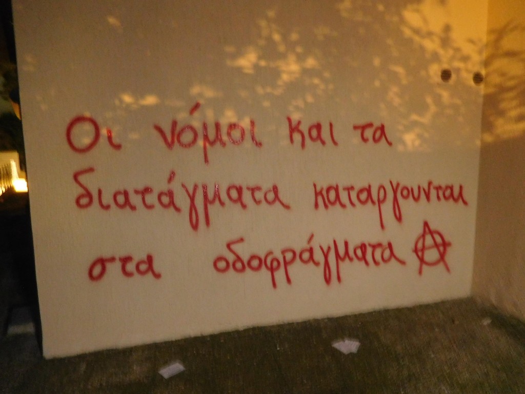 Τρικάκια με συνθήματα ενάντια στο νόμο για τα ΑΕΙ, πέταξαν αντιεξουσιαστές, στο πολιτικό γραφείο της υπουργού Παιδείας, Νίκης Κεραμέως, ενώ έγραψαν και συνθήματα σε τοίχο του κτιρίου.