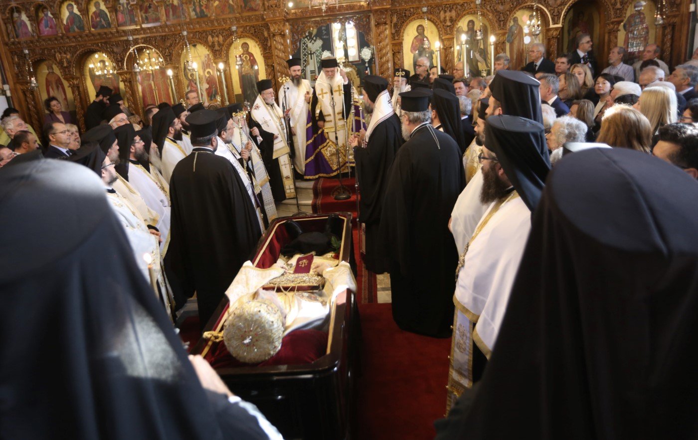 Προεξάρχοντος του Αρχιεπισκόπου Αθηνών κ. Ιερωνύμου τελέστηκε νωρίτερα η εξόδιος ακολουθία του μητροπολίτη πρώην Περιστερίου κυρού Χρυσοστόμου, στον μητροπολιτικό ναό Ευαγγελίστριας Περιστερίου.