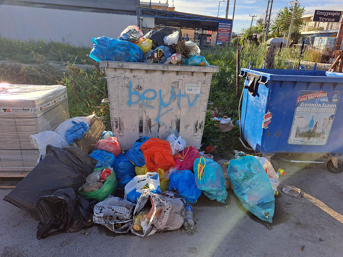 Πολλοί κάδοι έχουν ξεχειλίσει από σακούλες σκουπιδιών με αποτέλεσμα αυτά να έχουν κάνει στοίβες και δίπλα στους κάδους.