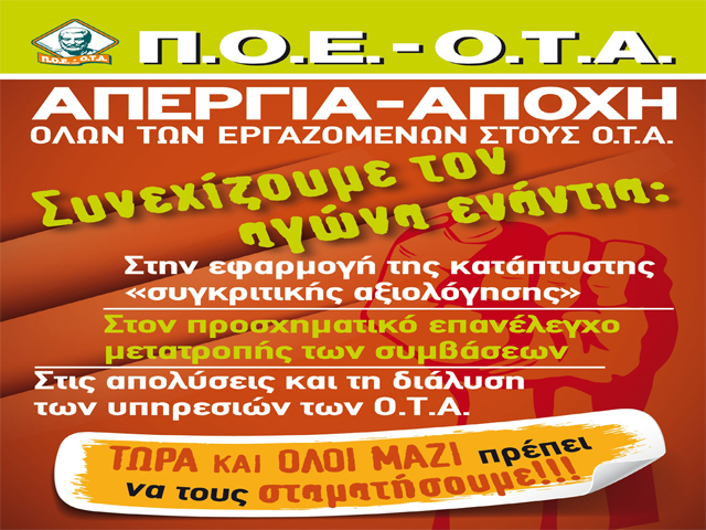 Την απεργία – αποχή από κάθε διαδικασία που αφορά την αξιολόγηση συνεχίζει η ΠΟΕ – ΟΤΑ έως τις 31 Δεκεμβρίου.