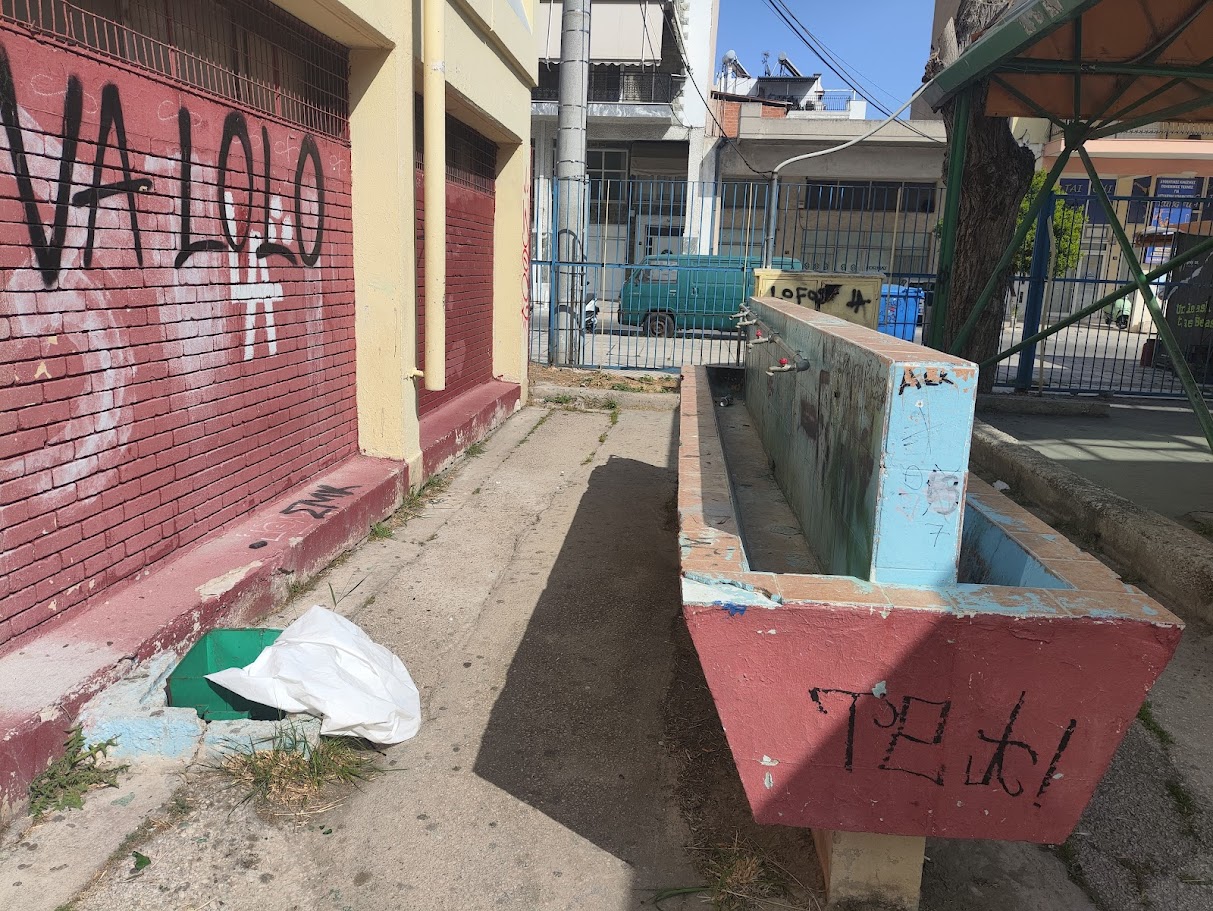 Το κατεστραμμένο γήπεδο μπάσκετ, οι χώροι γύρω του που θυμίζουν εστία μόλυνσης, τα σημάδια της εγκατάλειψης — μαρτυρούν χρόνια αδιαφορίας. Το σχολείο που δεσπόζει απέναντι από τον Ιερό Ναό Αγίας Αναστασίας, στον Άνω Λόφο Αξιωματικών, μοιάζει εγκαταλειμμένο στη μοίρα του εδώ και πάνω από μία δεκαετία.