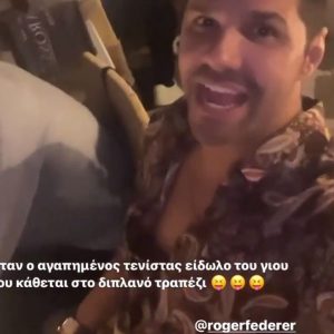 «Όταν ο αγαπημένος τενίστας και είδωλο του γιου σου κάθεται στο διπλανό τραπέζι», έγραψε ο Γιώργος Τσαλίκης, αναφερόμενος στον γιο του Χάρη που ασχολείται με το τένις.