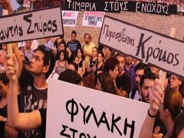 Οι περισσότεροι πολίτες, που είναι μαυροφορεμένοι, φωνάζουν συνθήματα όπως «Χριστόφια παραιτήσου, εσύ και υπουργοί σου», «Χριστόφια παραιτήσου, εγκληματίες ανίκανοι ερασιτέχνες».