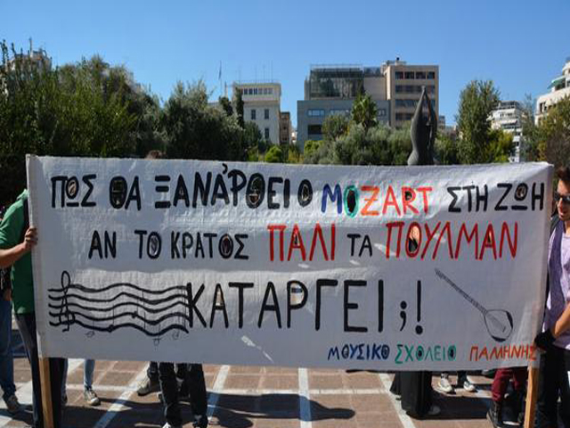 Πορεία προς τη Βουλή πραγματοποιούν καθηγητές, γονείς και μαθητές από ειδικά, μουσικά και καλλιτεχνικά σχολεία της Αθήνας και του Πειραιά.