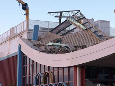 Σύμφωνα με τις αρχές του αεροδρομίου η σκεπή κατέρρευσε λόγω των ισχυρών ανέμων που έπνεαν στην περιοχή.