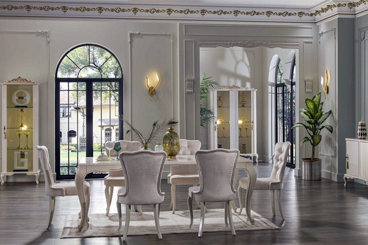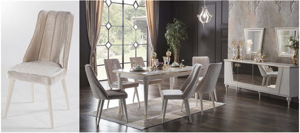 Οι ρουστίκ καρέκλες τραπεζαρίας είναι κλασικές και αγαπημένες και μπορούν να δώσουν μία πιο κλασική νότα στην τραπεζαρία σαλονιού σας. Αν μάλιστα το σαλόνι σας είναι σχεδιασμένο με πιο παραδοσιακό αλλά και πολυτελές στυλ, τότε η Vitella από την Istikbal Kimerland είναι μονόδρομος, καθώς το ουδέτερο φίλντισι χρώμα της και ο κομψός σχεδιασμός της, την κάνει ιδανική επιλογή για όλες τις κλασικές τραπεζαρίες σαλονιού.