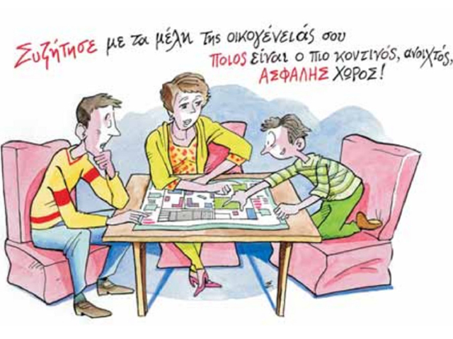 - Συζήτησε με τα μέλη της οικογένειάς σου και επισήμανε ποια είναι τα κατάλληλα σημεία προφύλαξής σου ανά χώρο, πώς κλείνει ο γενικός διακόπτης του ηλεκτρικού ρεύματος, ποια είναι τα χρήσιμα τηλέφωνα σε περίπτωση έκτακτης ανάγκης (π.χ. Ευρωπαϊκός Αριθμός Έκτακτης Ανάγκης: 112), ποιος είναι ο κοντινός ασφαλής χώρος όπου θα καταφύγετε και θα συναντηθείτε ύστερα από ένα σεισμό.