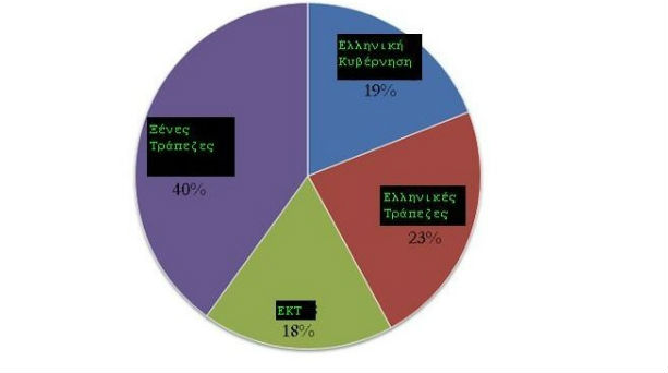- 40 λεπτά του ευρώ καταλήγουν στα ταμεία των ξένων χρηματοπιστωτικών ομίλων που δάνεισαν την Ελλάδα