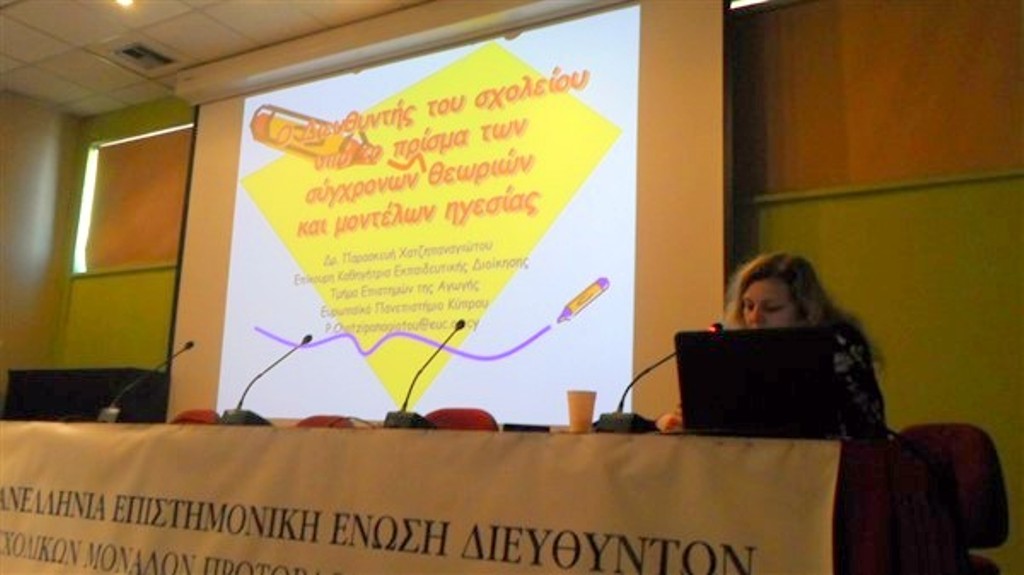 Εισηγήτρια ήταν η Δρ. Παρασκευή Χατζηπαναγιώτου, Επίκουρη Καθηγήτρια Εκπαιδευτικής Διοίκησης στο Τμήμα Επιστημών της Αγωγής του Ευρωπαϊκού Πανεπιστημίου Κύπρου και Επιστημονικά Υπεύθυνη του 5ου Επιμορφωτικού Κύκλου Σεμιναρίων 2018-2019 της Ένωσης Διευθυντών.