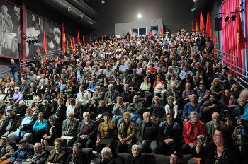 Στο Θέατρο Πολιτών συναντήθηκαν άνθρωποι κάθε ηλικίας, ανάμεσά τους και εκπρόσωποι της ΕΑΜικής Εθνικής Αντίστασης, της αντιδικτατορικής πάλης, αλλά και συγγενείς τους. Βρέθηκαν δίπλα δίπλα με τη νεολαία της περιοχής, τους ΚΝίτες και τις ΚΝίτισσες που γέμισαν ασφυκτικά το θέατρο, φωνάζοντας συνθήματα όπως «Ούτε σε ξερονήσια, ούτε σε φυλακές, ποτέ τους δε λυγίσανε οι κομμουνιστές» και «Ενας αιώνας αγώνας και θυσία – το ΚΚΕ στην πρωτοπορία».