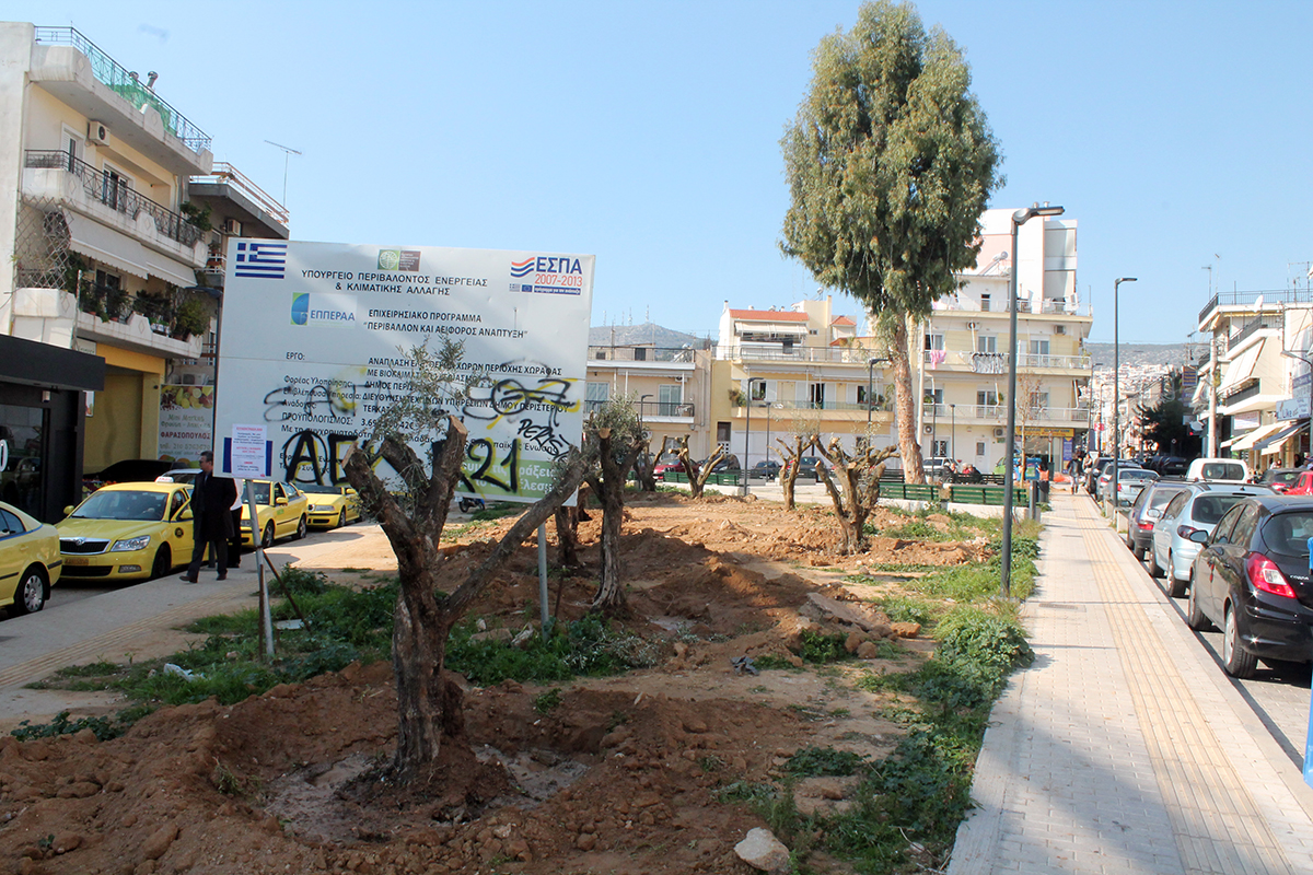 Οι δενδροφυτεύσεις έγιναν στη τελευταία φάση ολοκλήρωσης του μεγάλου βιοκλιματικού έργου που πραγματοποιείται στην περιοχή του Αγίου Ιεροθέου και της Χρυσούπολης.