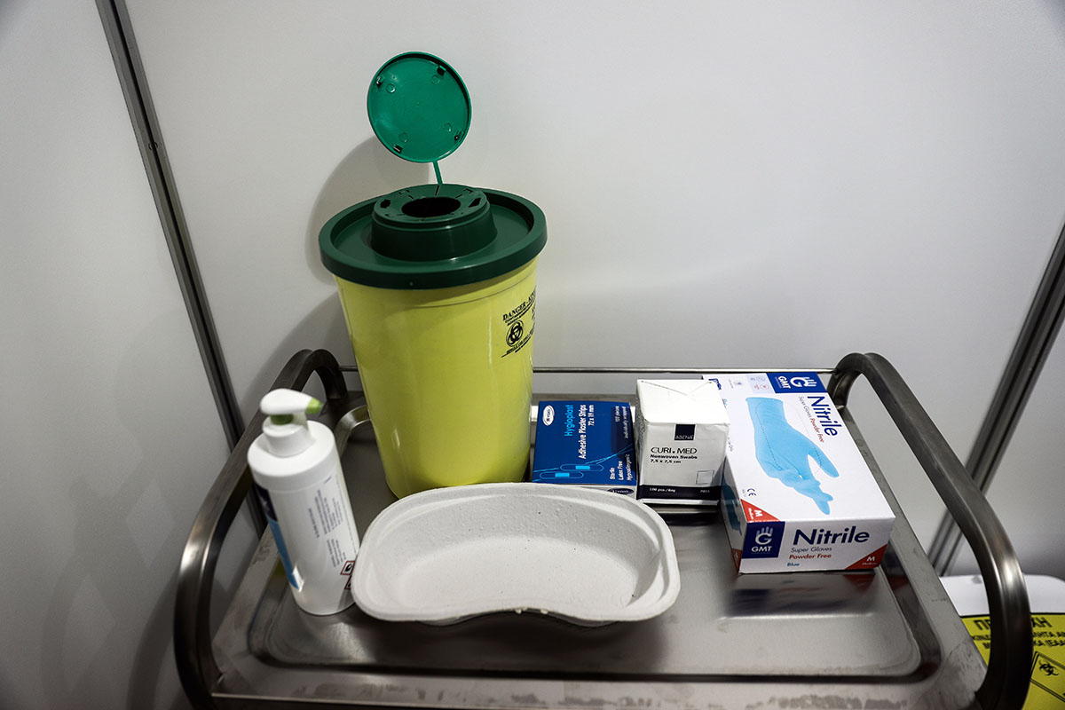 Στο χώρο έχουν τοποθετηθεί ειδικές σημάνσεις για την καθοδήγηση των πολιτών στους ειδικούς χώρους (αναμονής, εμβολιασμού, γραμματείας) και για τη διατήρηση των προβλεπόμενων αποστάσεων.