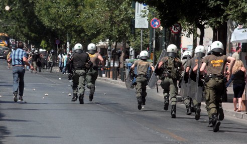 Ένταση επικράτησε έξω από την είσοδο του υπουργείου Εργασίας στην οδό Σταδίου, ανάμεσα σε μέλη του ΠΑΜΕ και αστυνομικές δυνάμεις.