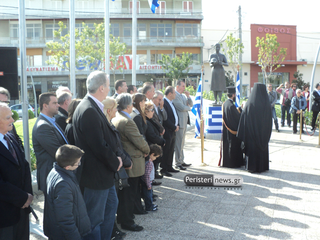 Ειδικότερα, τελέσθηκε η επιμνημόσυνη δέηση από τους ιερείς του Μητροπολιτικού Ναού «Ευαγγελισμού», ακολούθησε η ομιλία του Δημάρχου Περιστερίου Ανδρέα Παχατουρίδη, κατάθεση στεφάνων, τήρηση ενός λεπτού σιγής και η τελετή ολοκληρώθηκε με την ανάκρουση του Εθνικού Ύμνου από τη Φιλαρμονική του Δήμου Περιστερίου.