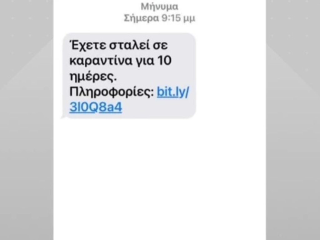 «Έχετε σταλεί σε καραντίνα για 10 ημέρες» γράφει ένα SMS που λαμβάνουν πολίτες στο κινητό τους, το οποίο συνοδεύει ένα λινκ με «πληροφορίες». Πρόκειται για τη νέα μέθοδο απάτης που χρησιμοποιούν κάποιοι για υποκλέψουν ευαίσθητα δεδομένα.