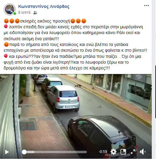 Ένα video που σοκάρει ήρθε στο φως της δημοσιότητας όπου οδηγός λεωφορείου σκοτώνει γατάκι σε δρόμο του Περιστερίου.