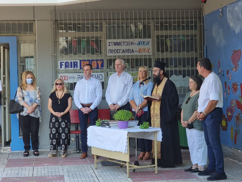 Κοντά στους μαθητές της πόλης βρέθηκαν ο Δήμαρχος Περιστερίου Ανδρέας Παχατουρίδης κατά την τελετή του αγιασμού, Αντιδήμαρχοι και δημοτικοί σύμβουλοι.